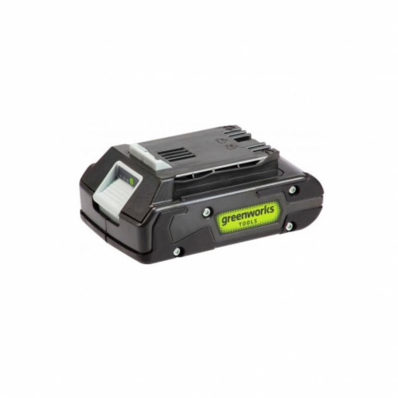 De Greenworks 24 volt accu 2.0 Ah type G24B2 (voorheen 29807) is een Lithium Ion accu met een 2.0Ah inhoud, 3 x langere levensduur dan NICAD accu’s, laadtijd van 45 minuten, geen geheugen effect “u mag altijd laden”, geeft continue een gelijk vermogen, tot 2000x oplaadbaar. De accu’s zijn voorzien van 3 led lampjes welke de hoeveelheid energie aangeven.