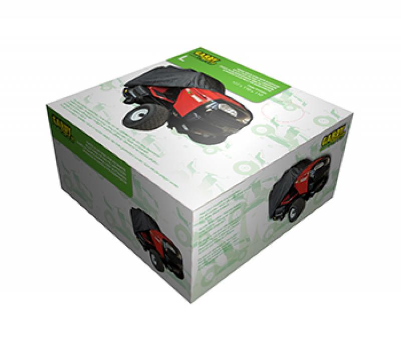 9102494 Beschermhoes voor zitmaaiers met achteropvang, in zwart polyester. 203 x 127 x 137