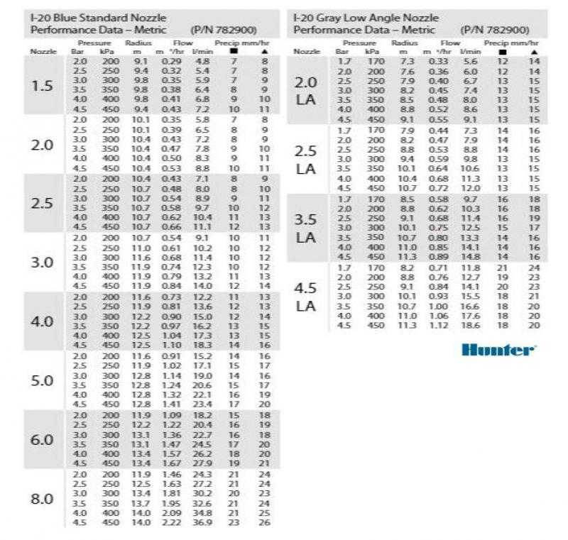 Zie Nozzle tabel